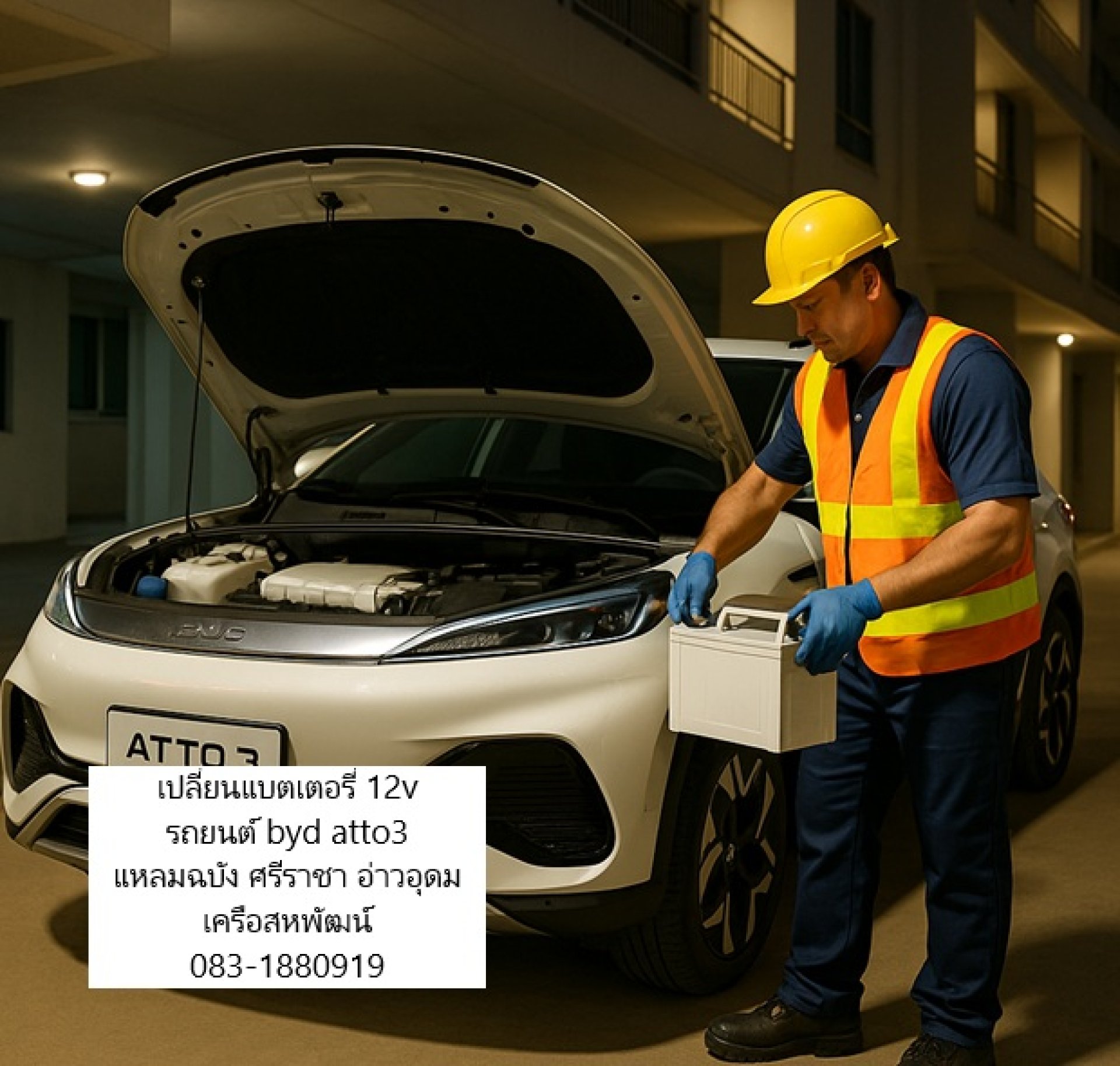บริการเปลี่ยนแบตเตอรี่ 12V รถยนต์ไฟฟ้า BYD ATTO3 ถึงที่ แหลมฉบัง ศรีราชา อ่าวอุดม