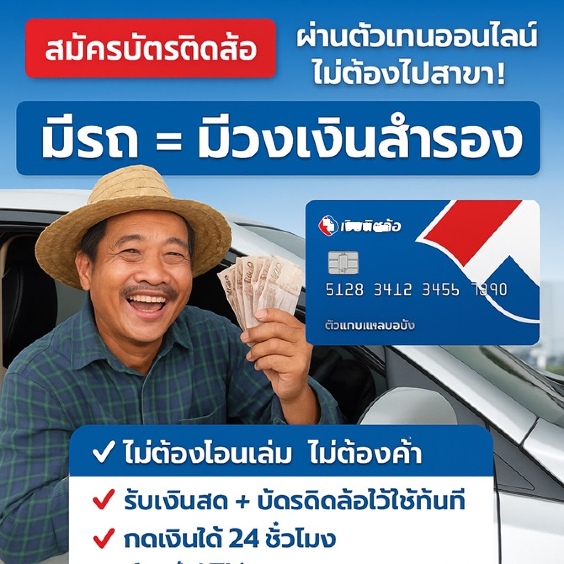 ไม่ต้องโอนเล่ม ไม่ต้องค้ำ รับเงินสด + บัตรติดล้อไว้ใช้ทันที