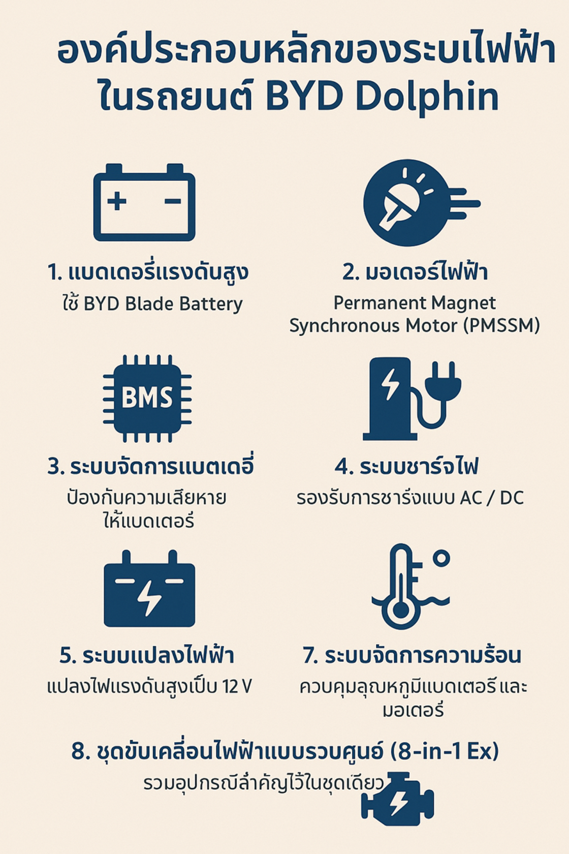 องค์ประกอบหลักของระบบไฟฟ้าในรถยนต์ BYD Dolphin