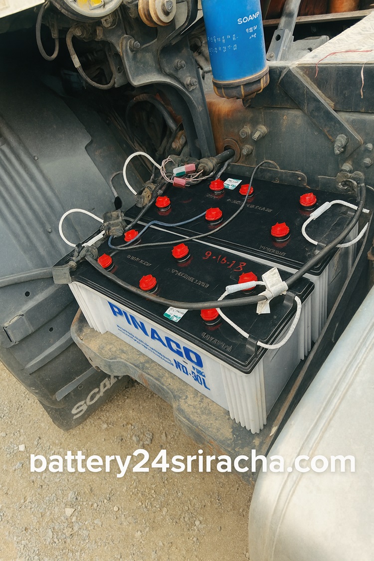 แบตเตอรี่หัวลาก 24 ชั่วโมง ศรีราชา เปลี่ยนแบตเตอรี่ Scania P360 อ่าวอุดม