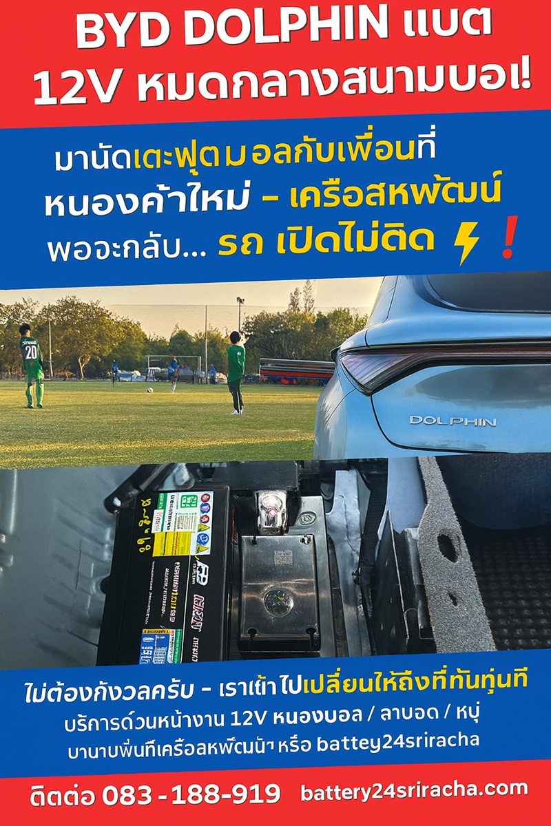 การมาเตะฟุตบอลหรือมาเจอเพื่อนในช่วงเย็นที่ สนามบอลหนองคล้าใหม่ เครือสหพัฒน์ ควรจะเป็นเวลาผ่อนคลาย แต่หลายครั้ง รถ EV อย่าง BYD Dolphin กลับสร้างความปวดหัวแบบไม่ทันตั้งตัว เมื่อแบตเตอรี่ลูกเล็ก 12V หมด รถเปิดไม่ติด ไฟไม่ตอบสนอง และขึ้นข้อความแจ้งเตือนเต็มหน้าจอ ทำให้กลับบ้านไม่ได้ทันที