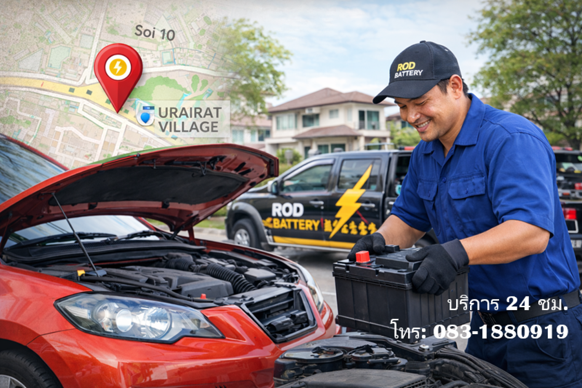 เมื่อคุณขับรถยนต์ใน หมู่บ้านอุไรรัตน์วิลเลจ, ถนน เขาดิน – ตำบลทุ่งสุขลา แล้วเกิดปัญหา แบตเตอรี่หมดจนสตาร์ทไม่ติด ต้องการช่างด่วนถึงที่ทันทีไม่ต้องลากรถไปอู่เอง — คุณสามารถเรียกใช้บริการ แบตเตอรี่นอกสถานที่ ซอย10 ดาวเทียม จากทีมงานช่างมืออาชีพของเราได้ทันที ️