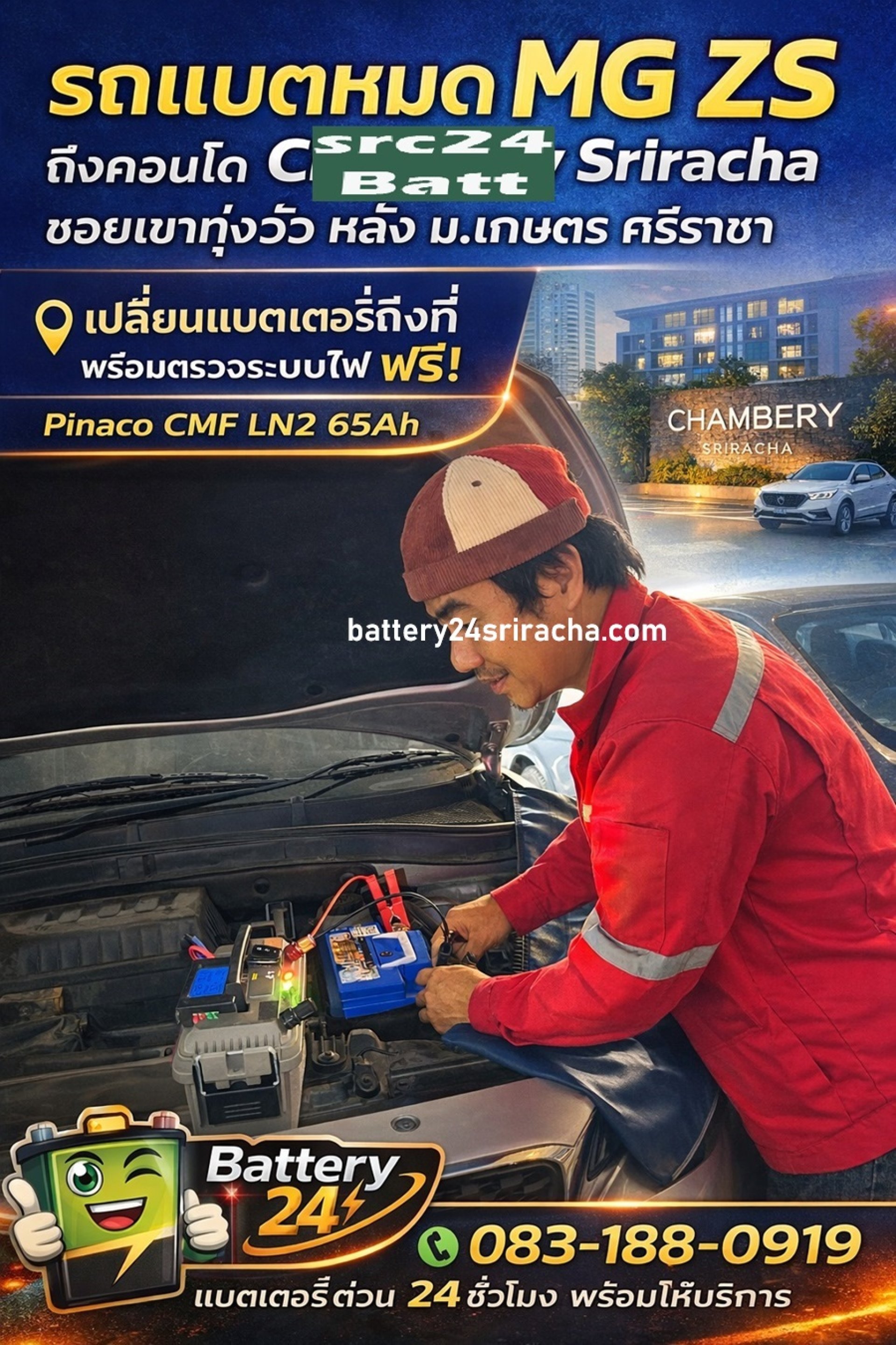 เรียกช่างเปลี่ยนแบตเตอรี่ถึงที่  บริการด่วน 24 ชั่วโมง โดย Battery24Sriracha Chambery Sriracha แชมเบอรี่ ศรีราชา